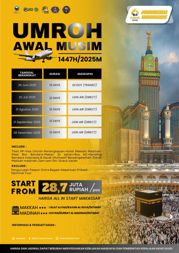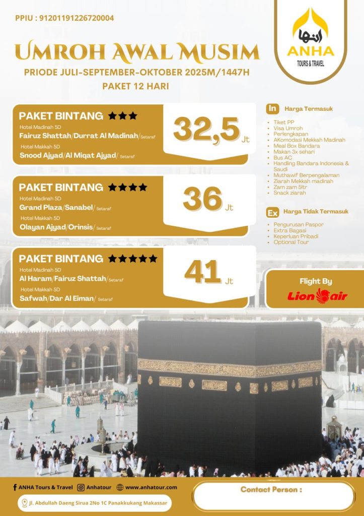Mengutamakan pemaknaan ibadah sebagai tujuan, Anha Tour memberikan pelayanan perjalanan umroh secara syar’i dan profesional.